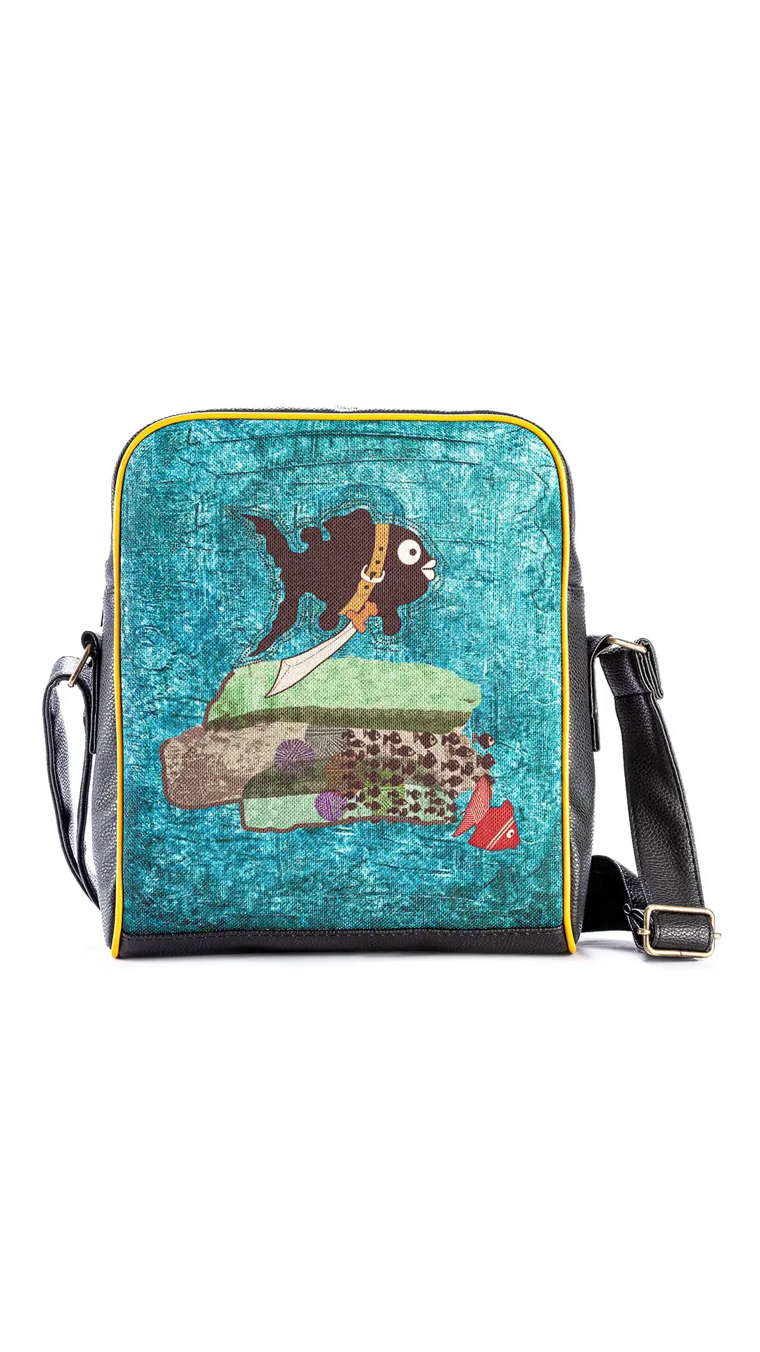 Bolso grande estampado balik. Impreso con pinturas a base de agua sobre piel vegana.