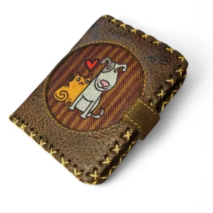 Divertida cartera rectangular baykuslar. La textura de las carteras es de suave nobuk y el interior de piel serraje.