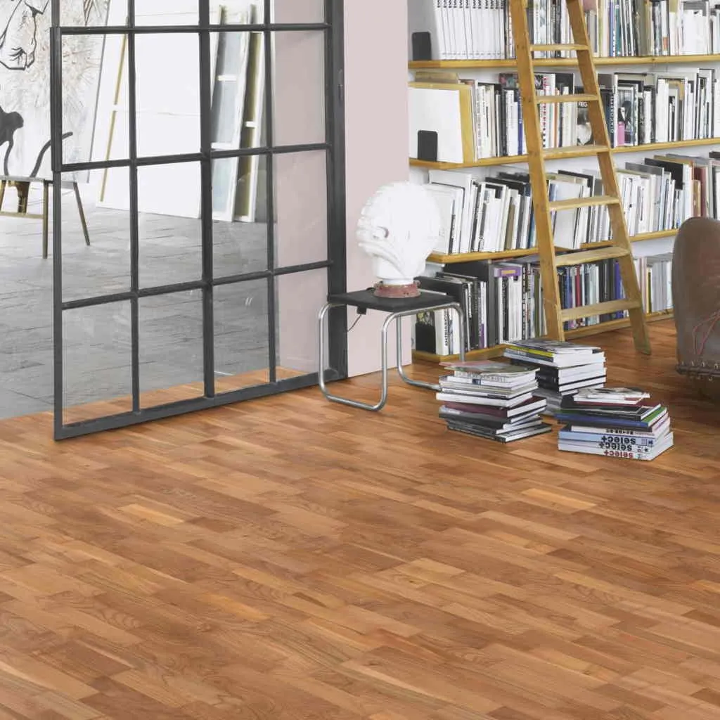 Los suelos de la colección Classic 3060 de Parador cuentan con una protección eficaz contra el hinchamiento de los cantos gracias a la impregnación de todo el contorno. Suelos de gran belleza que puedes instalar sobre calefacción por suelo radiante.