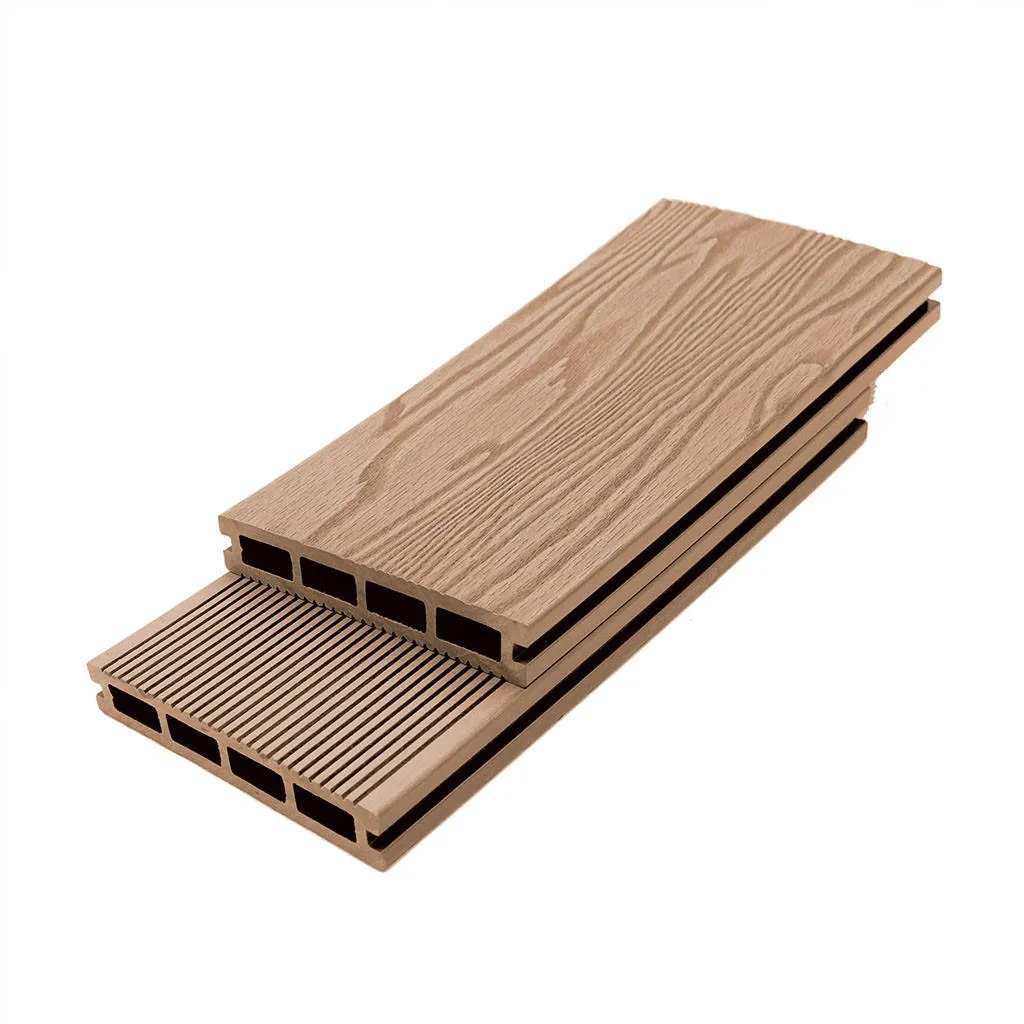 Los tableros de la colección Elegant 3D de Bruggan están fabricados con una mezcla de madera y polímeros que le confieren una gran resistencia y durabilidad. Se presentan en formato tablón con estructura alveolar interna que facilita la ventilación.
