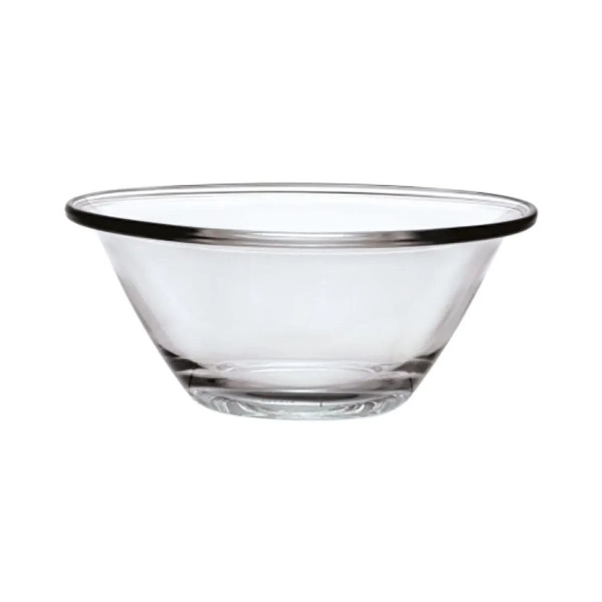 Ensaladera en vidrio transparente prensado con un diseño que permite su uso tanto en cocina como en presentación de mesa. Apto para lavavajillas.
