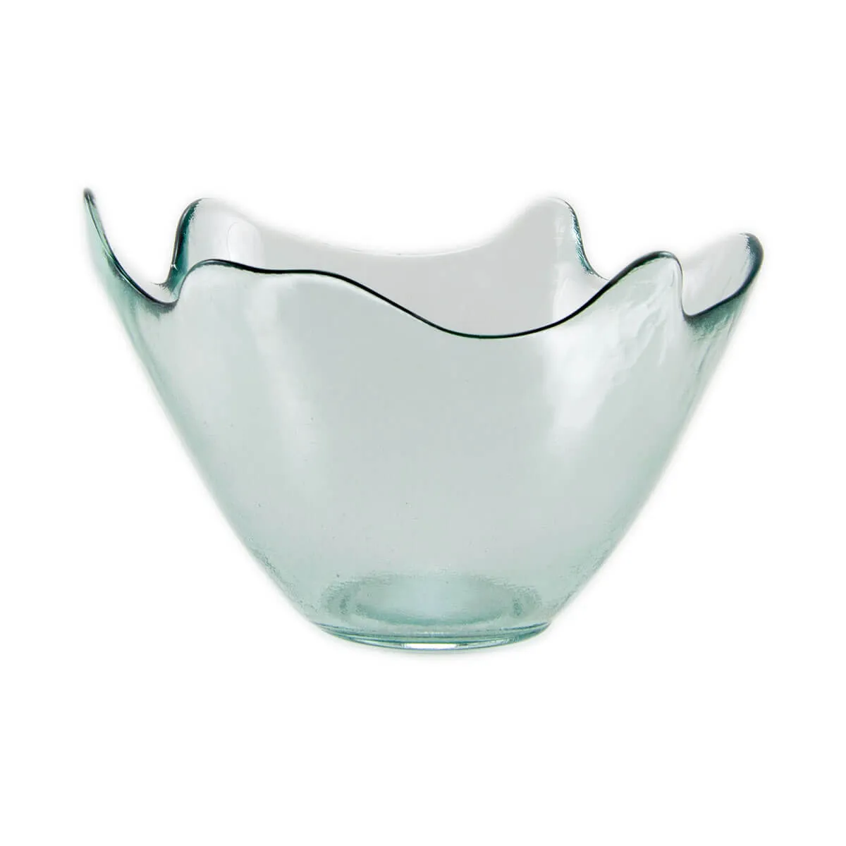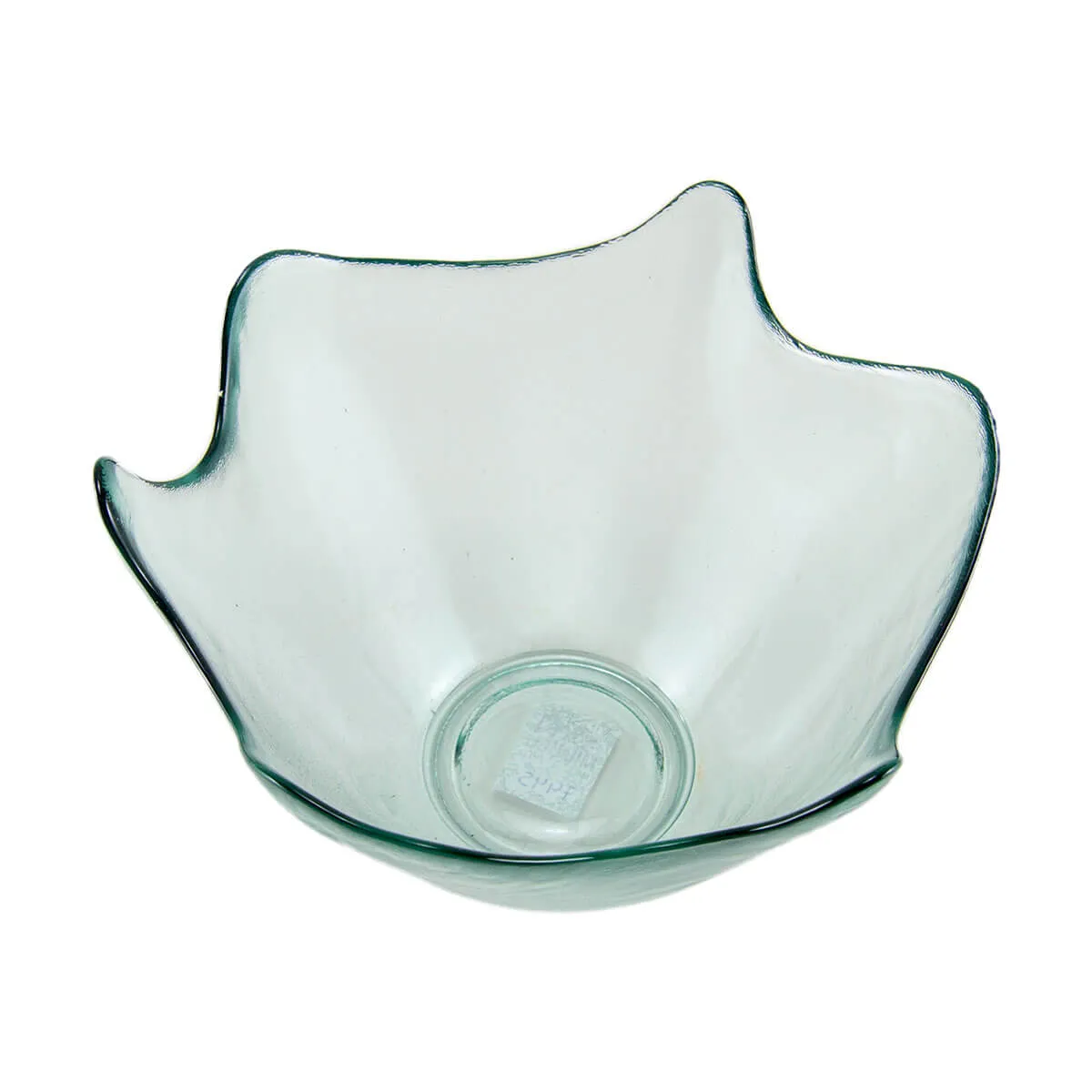 Preciosa ensaladera en vidrio rústico reciclado con una forma sugerente. Ideal para hacer presentaciones muy espectaculares en tu mesa. Producto de fabricación nacional.