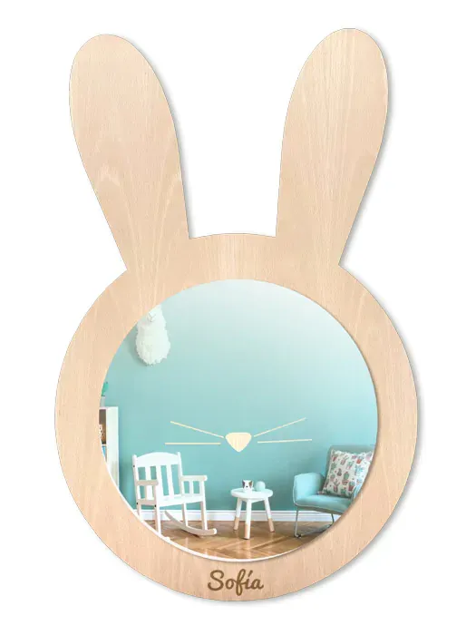 Espejo infantil de Conejo para la habitación de los niños, con detalle de nariz para que se rían al mirarse en él.