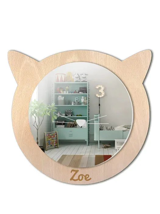 Espejo infantil de Gato para la habitación de los niños, con detalle de nariz para que se rían al mirarse en él.