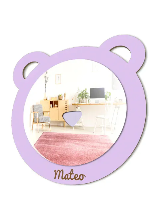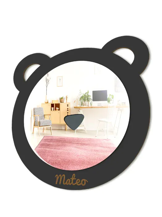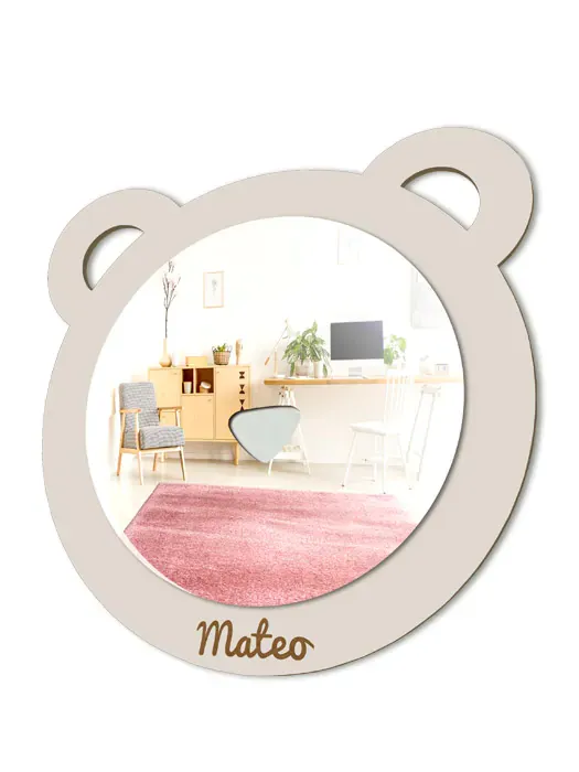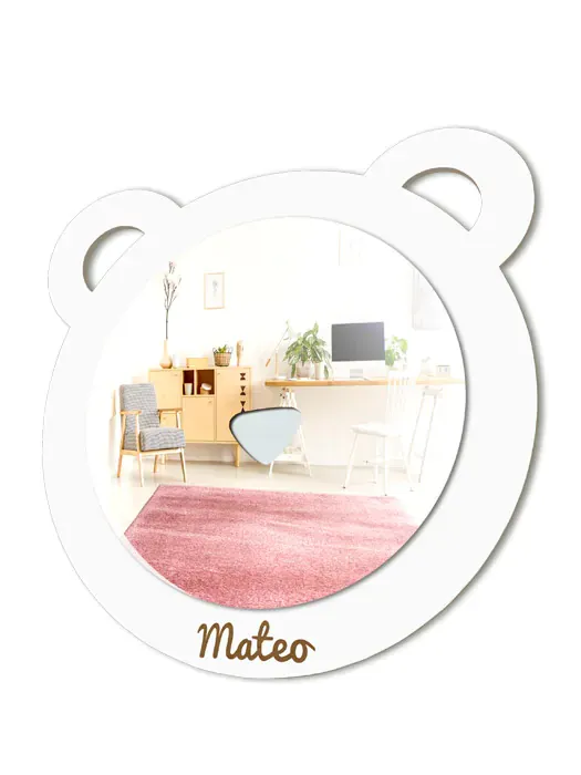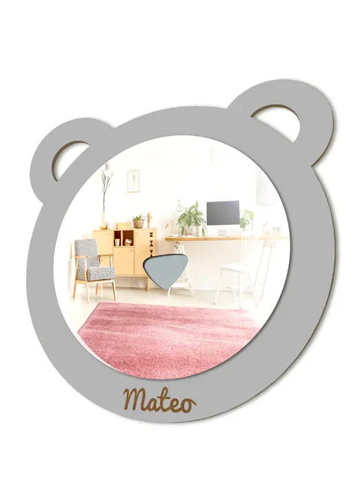 Espejo infantil de Oso para la habitación de los niños, con detalle de nariz para que se rían al mirarse en él.
