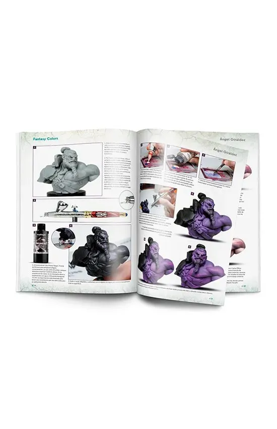 Fantasy Colors no es solo un libro, es una fuente inagotable de inspiración y conocimiento para todos los entusiastas de la fantasía. A través de ocho artí culos, donde se muestran exhausti vos procesos paso a paso, descubrirás las técnicas y secretos de sus autores, que han llevado sus habilidades al límite para crear estos impresionantes trabajos, y aprenderás a uti lizar la gama Game Color, para lograr los efectos más sorprendentes. Cada uno de los autores se centra en unas técnicas concretas, desde el uso del aerógrafo, hasta los efectos de iluminación más avanzados, pasando por las técnicas de uso de Xpress Color, la pintura de metales y los diferentes tonos de piel que la versatilidad de Game Color permite conseguir.