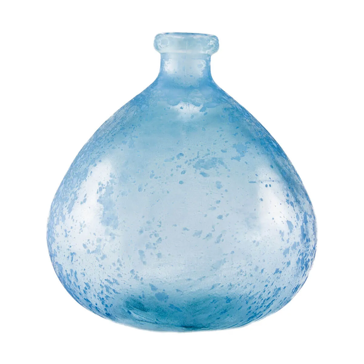 Bonito jarrón ánfora de 23 cm. de altura para decorar el centro de la mesa, una mesita auxiliar o una alacena. Fabricado en vidrio rústico reciclado con una decoración azul hecha a mano con reactivo. Una pieza impresionante. Producto de fabricación nacional.