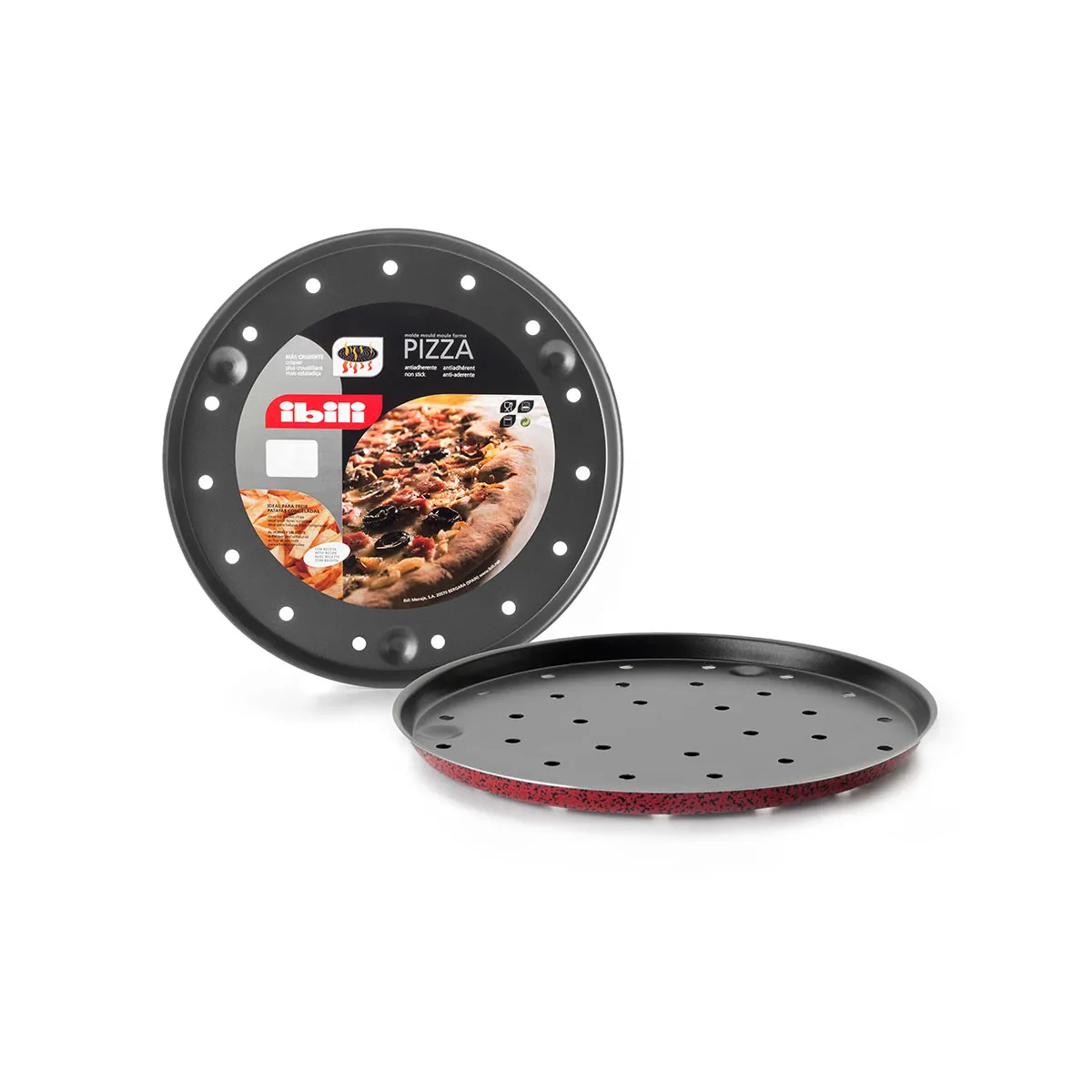 Molde de aluminio para hornear pizzas.