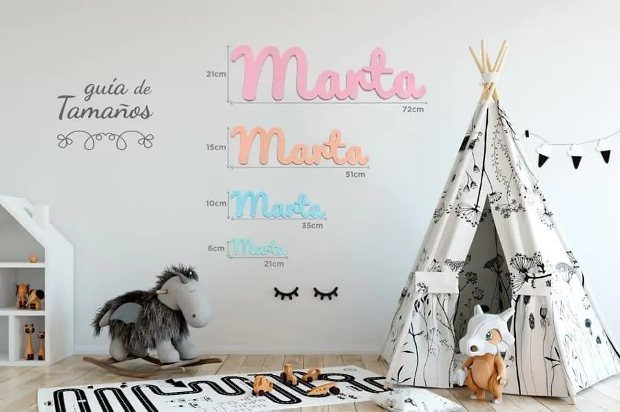 Nombre mediano en color personalizado, perfecto para decorar la habitación de los más pequeños de la casa.