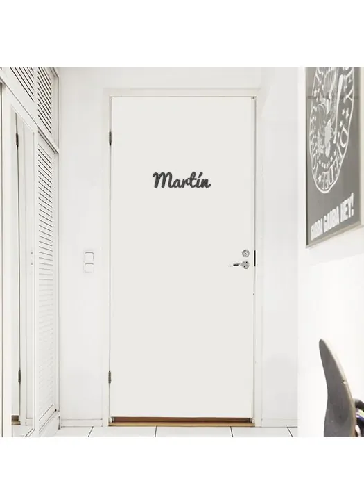Para evitar hacer agujeros, te recomendamos la cinta adhesiva. Así podrás pegar el nombre de una forma muy fácil y sin dañar la superficie.