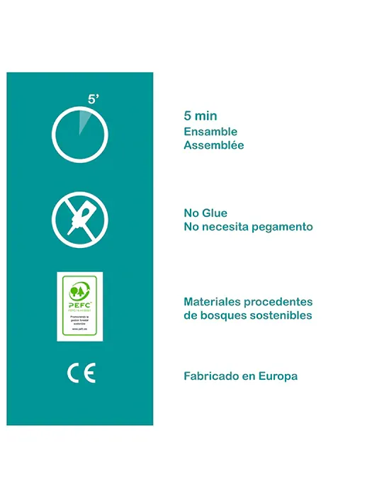 - [MATERIALES] El organizador de pinturas está fabricado en madera blanca sostenible con certificado PEFC, utilizamos tecnología láser para cortar la madera consiguiendo así unos acabados limpios y de calidad.