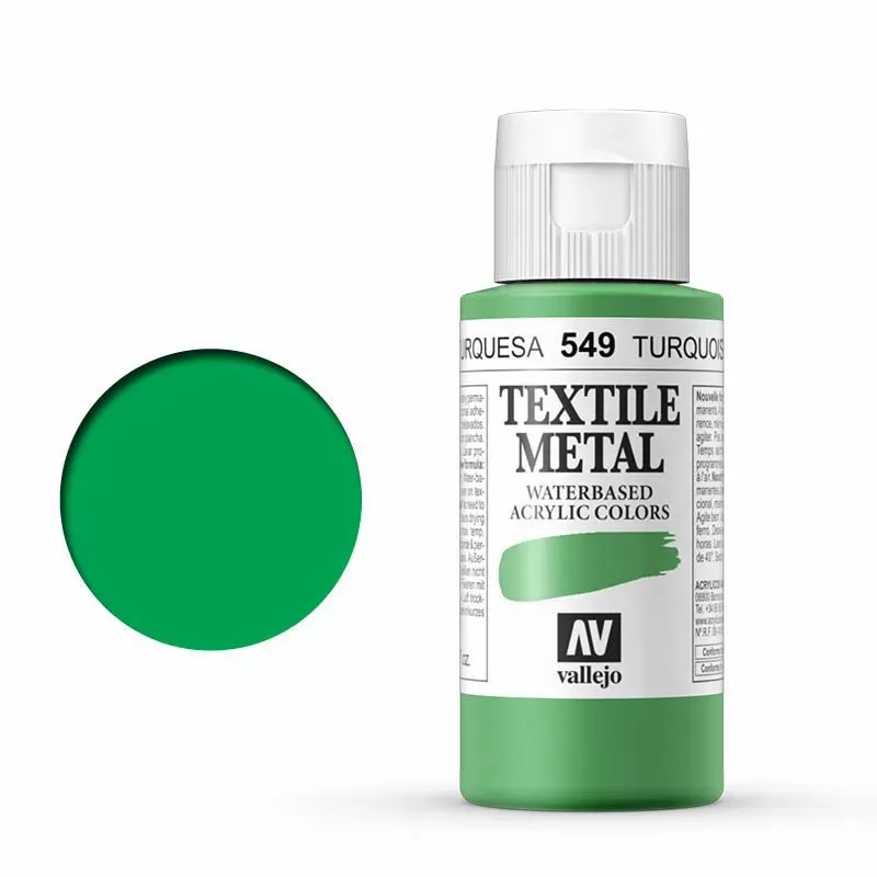 Pintura Textil Vallejo 60 ml. Color Turquesa Metalizado num. 549