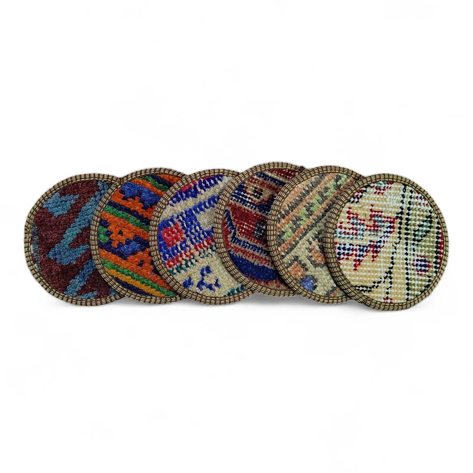 Elegante set de 6 posavasos de kilim, completamente hechos a mano con kilims y alfombras antiguas reutilizadas.
