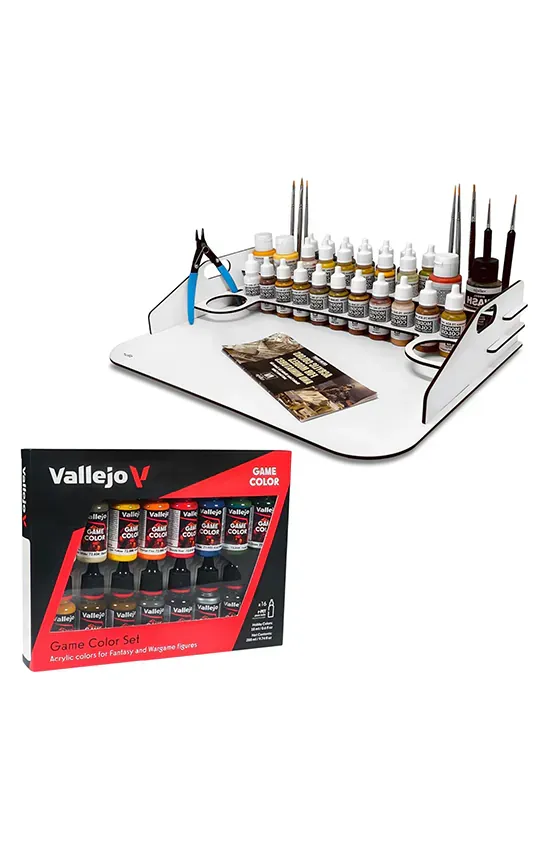 Set Paint Station 40 + Game Color Vallejo, ahora el set completo para disfrutar de tu hobbie. Coloca tus pinturas sobre el expositor y organiza tu espacio.