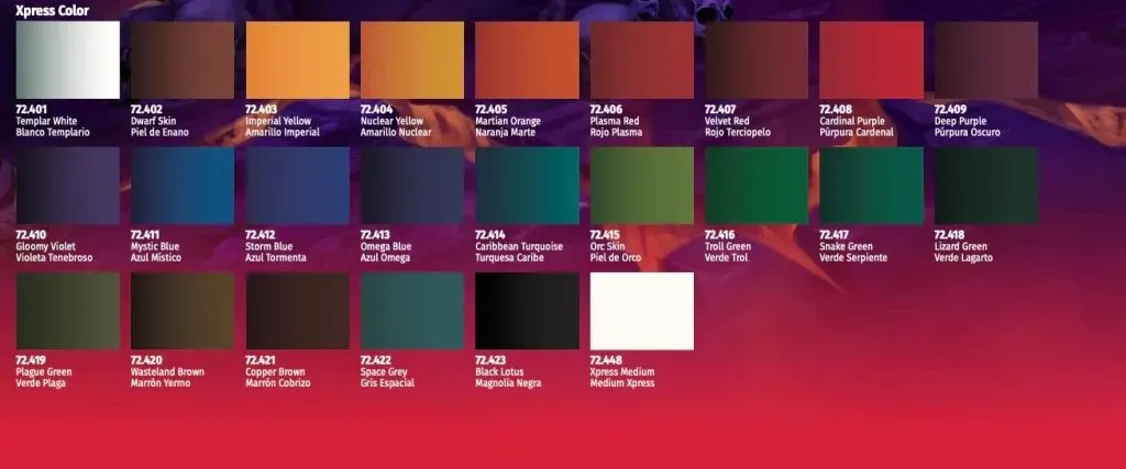 Set Xpress Color Vallejo Paint Station. NOVEDAD Nueva gama de colores Vallejo, XPRESS COLOR, se el primero en tener las nuevas pinturas del conocido fabricante. El paquete incluye el set de 24 pinturas y la estacion de trabajo para pinturas Vallejo y Citadel.