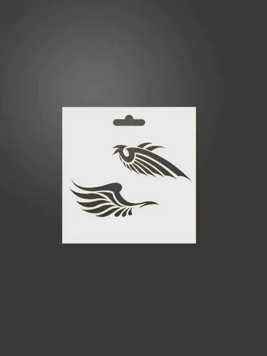 Plantilla stencil con motivo: «Alas», de medidas 125mm x 125mm, en superficie traslucida y flexible de alta calidad cortadas a láser con la máxima precisión. Para realizar estarcido aplicando sobre cualquier superficie limpia y seca. Dispones infinidad de modelos que pueden combinarse entre sí.