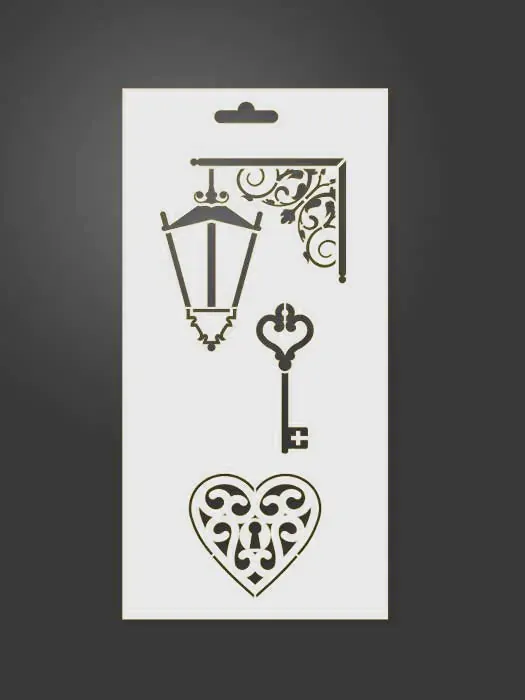 Plantilla stencil con motivo herrajes, de medidas 125mm x 250mm, en superficie traslucida y flexible de alta calidad cortadas a láser con la máxima precisión. Para realizar estarcido aplicando sobre cualquier superficie limpia y seca. Dispones infinidad de modelos que pueden combinarse entre sí.