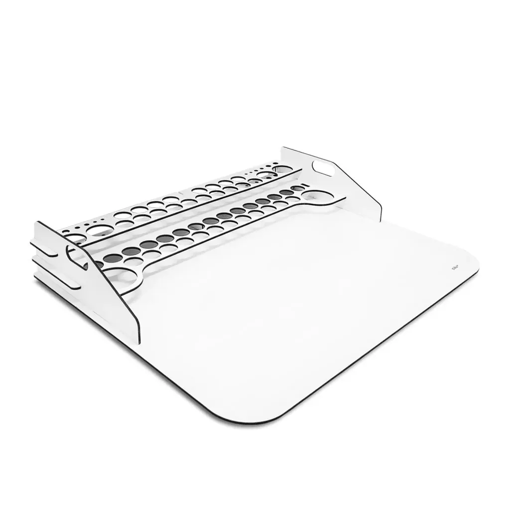 - El organizador de pinturas está fabricado en madera blanca sostenible con certificado PEFC. Utilizamos máquinas láser para cortar la madera consiguiendo así unos acabados limpios y de calidad.