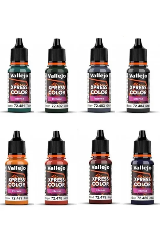 Xpress Color Gama Intense 8 ud. Vallejo exclusivos que incorporan mayor carga de pigmento para obtener tonos más vibrantes y saturados.